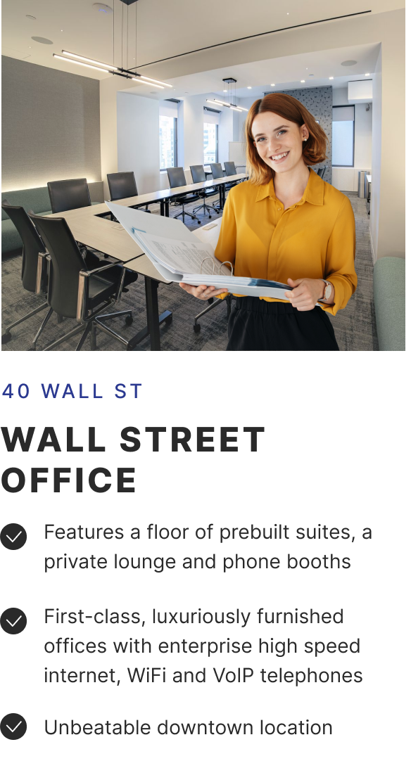 It's hard to believe you can get a private office space for rent, in a luxury suite with full time staff in a classic building next to the New York Stock Exchange for the price they offer at Jay Suites Fidi...but it's not too good to be true, it's true! A small office space for rent NYC is always available on-demand!